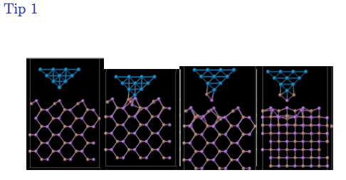 When listening to the discussion as a non-nanoscientist, I was getting confused between what people called the ‘tip’ and the ‘termination’. Interestingly, when discussing the image of the simulation, one of the experimentalists noted that the “atom on the end will not be happy; it’ll want to go nuts”. The ‘happiness’ of the atom seemed to depend on the tip/termination. My own ‘happiness’, I began to think, depended largely on finding out what the relation was between a tip, a termination and a surface – and atoms, of course!
