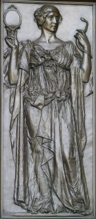 The English entry starts with a brief conceptual overview of ‘truth’ which goes directly into medias res, mentioning Heidegger, Peirce, and Nietzsche on the first page – all major contributors to theories of truth, but slightly overwhelming to read about. This short overview introduction is illustrated with three images: a painting where Time slays Falsehood and rescues Truth (the slayer and slayee are male, truth is female, and like many images of ‘truth’, naked). The image has the subtitle ‘Time saving truth from falsehood and envy, François Lemoyne, 1737’. The reader is also confronted with a bas relief of ‘Truth [the Roman Goddess of Truth], holding a mirror and a serpent (1896) [by] Olin Levi Warner, Library of Congress Tomas Jefferson Building, Washington, D.C.’ (see left); and the final image is a photo of a stone head that is ‘An angel carrying the banner of “Truth”, Roslin, Midlothian’.