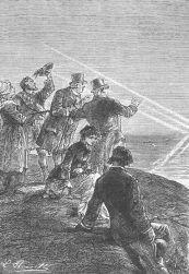 Looking at the ‘green rays’ crisscrossing the Hamburg sky reminded me of one of the lesser-known novels by one of the pioneers of science communication and of the use of light in science communication, namely Jules Verne. This is the novel Le Rayon Vert published in 1882. The title refers to an optical phenomenon, green rays, which can sometimes be seen just before sunset or after sunrise (see featured image, I think).