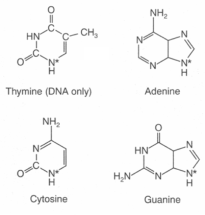 These bases (i.e. chemicals) are represented by the ‘letters’ A, G, C, and T. Chemically, they look like this: