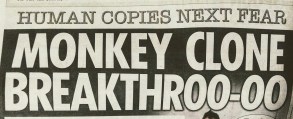 Today’s journalists, science writers and bloggers, writing about the cloned monkeys, can make this now not so unfamiliar event more familiar by not only referring to little known science and ethics as well as well-known fiction, but also by framing it with reference to Dolly the sheep. This cloned sheep has become a familiar icon of cloning, carrying a lot of conceptual baggage in terms of science and ethics, fears and fantasies. It would be fascinating to see how Dolly is used rather than (or in conjunction with) science fiction to engage with people anew with cloning.