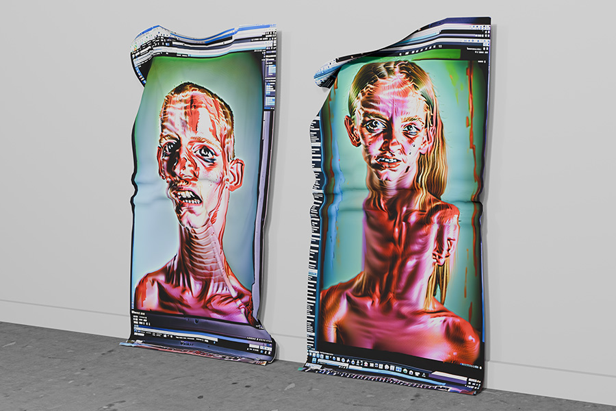 Image: Habsburg ‘portraits‘ designed by Martin Disley, reproduced with permission: Habsburg AI Portrait Studies is a series of cloth-printed generative portrait images produced using a bespoke diffusion model recursively retrained on its own output.